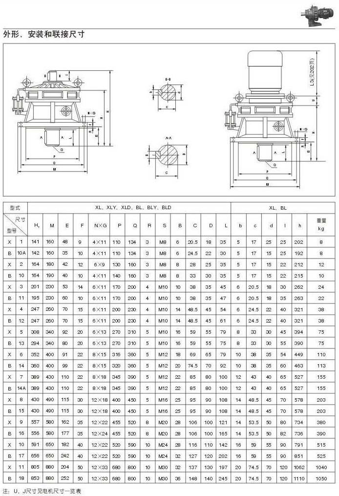 X . B擺線針輪減速機(jī)外型圖,安裝和聯(lián)結(jié)尺寸三 29