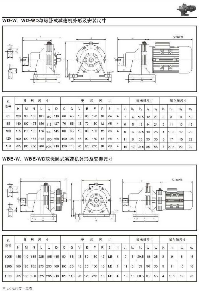 WB-W.WB-WD單級(jí)臥式減速機(jī)外型圖,安裝尺寸WBE-W . WEB-WD雙級(jí)臥式減速機(jī)外型圖,安裝尺寸